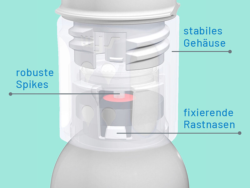 Für eine erfolgreiche und sichere Rekonstitution müssen die Spikes das Septum der Vials zentriert und vollständig durchstechen. Gleichzeitig sollte das Transfersystem so stabil sein, dass es weder abknickt noch abbricht.