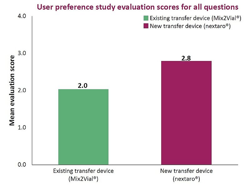 Octapharma, one of the world’s leading pharmaceutical companies specializing in the development, production, and distribution of drugs for treating various blood coagulation disorders, conducted a comparative study. The aim was to compare the user-friendliness and design of nextaro® with the existing Mix2Vial system. Both systems were evaluated for the reconstitution of coagulation factor products, among others, a four-Factor Prothrombin Complex Concentrate (Octaplex®/Balfaxar®). With positive results! The study revealed a 40% higher preference among users for the new nextaro® compared to the previous transfer system. The following factors were specifically compared: